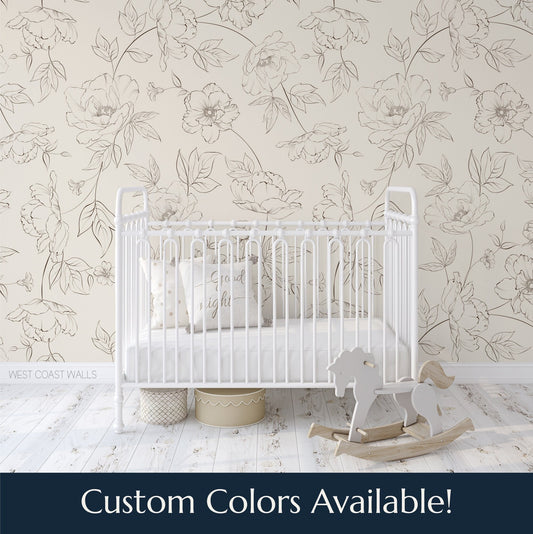 Other colors availableLarge Delicate Drawn Floral Wallpaper