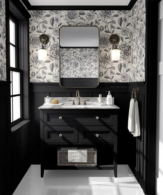 Other colors availableRose and Hydrangea Drawn Floral Wallpaper