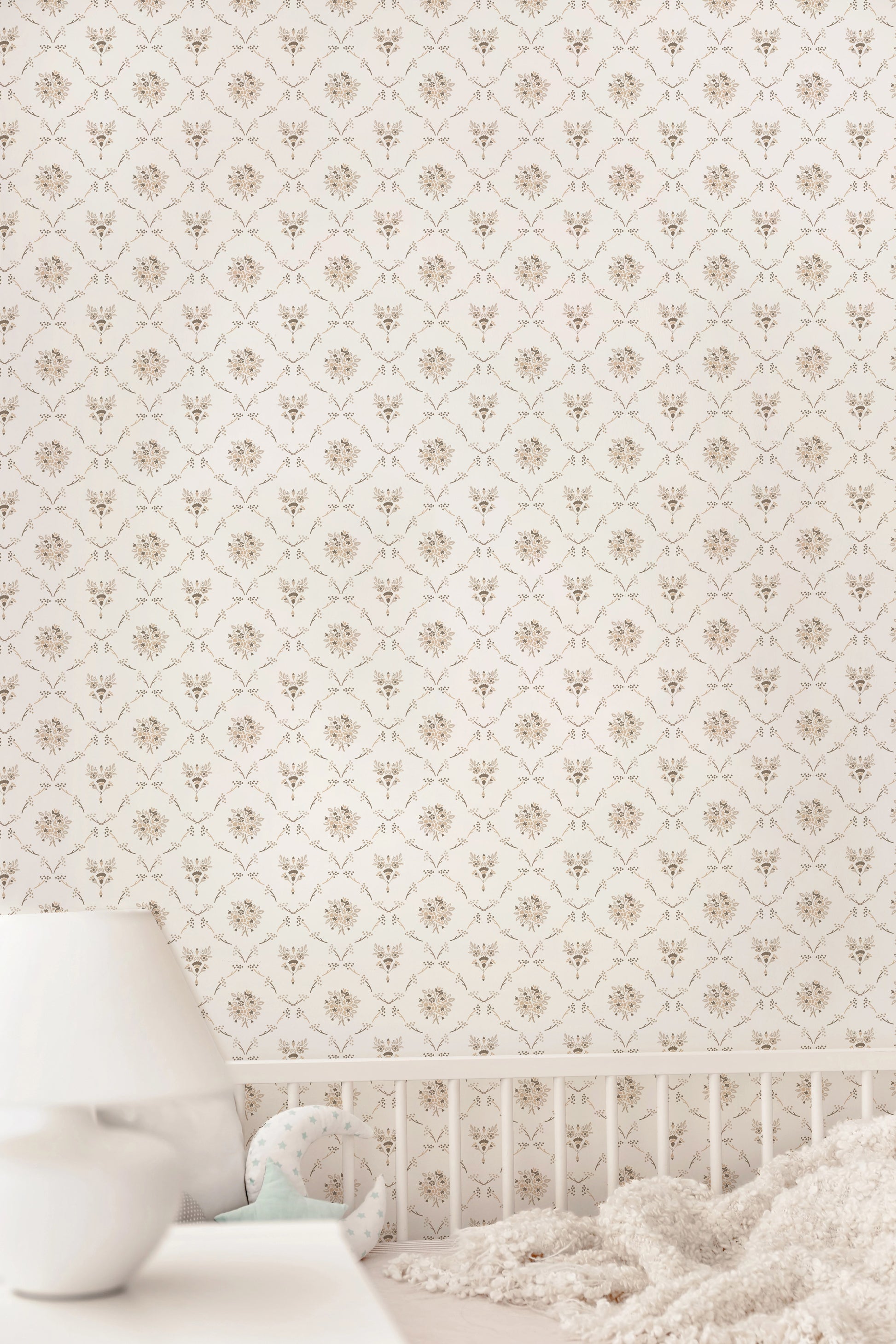 This elegant geometric wallpaper features dainty geometric florals with a vintage flair available in 4 colors